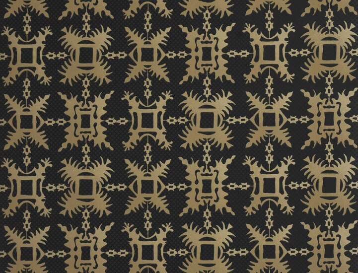 Jim Thompson Snowflake behang Black Gold i.s.m. Tony Duquette is hier online verkrijgbaar en in onze behangwinkel