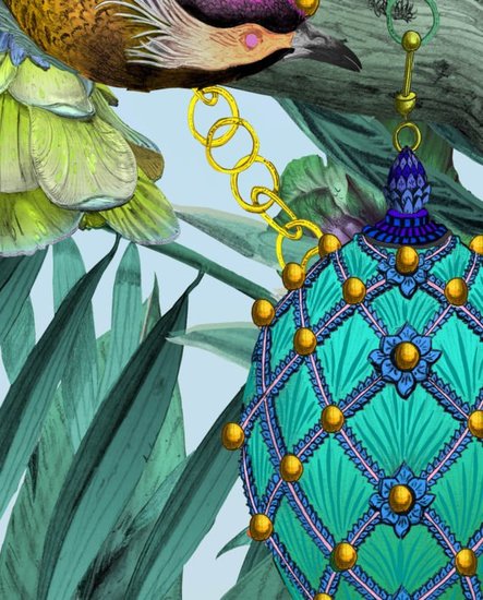 Een rijkelijk en intens gedetailleerd ontwerp, dat is het Ecclesiastical Botanica van Kit Miles. Een eerbetoon aan handwerk en vakmanschap. Op het paneel zijn vogels te zien, prachtige ornamenten en de invloed van de natuur. Een verrassend behang met prachtige kleuren. Het lijkt alsof de ornamenten lijken te flikkeren in het licht waardoor ook dit behang een surrealistisch tintje heeft. Het behang heeft een metallic glans.