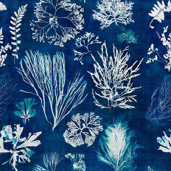 Mind the Gap Algae behang maakt een statement in uw interieur! Een overweldigende selectie van verschillende soorten zeewier, geplaatst op een donkergroene linnen achtergrond. Zeer smaakvol en een eye-catcher.