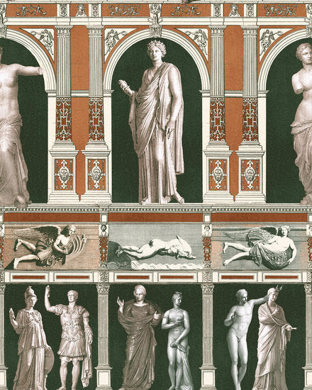 Mind the Gap Statues Antique behang is een indrukwekkend behangontwerp vol geschiedenis en verbluffende details met geïllustreerde beroemde standbeelden naar de originelen die te zien zijn in Musee Royale, het Franse koninklijke museum. Haal een stukje museum in huis met dit theatrale behang.