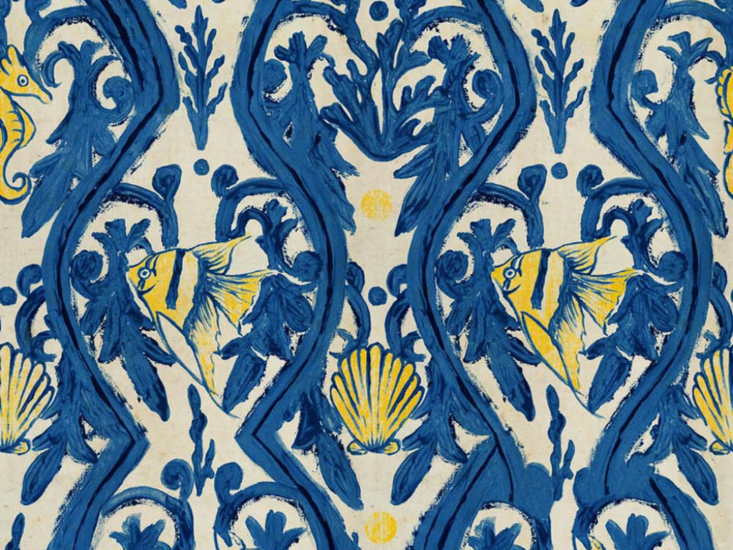 Het Mind The Gap Zakynthos Behang is een ode aan Griekenland. Een combinatie van traditioneel blauwe tinten en fris citroengele tinten met marine symbolen. Een prachtig en rijk patroon met mooie details zoals delicate vissen en schelpen.