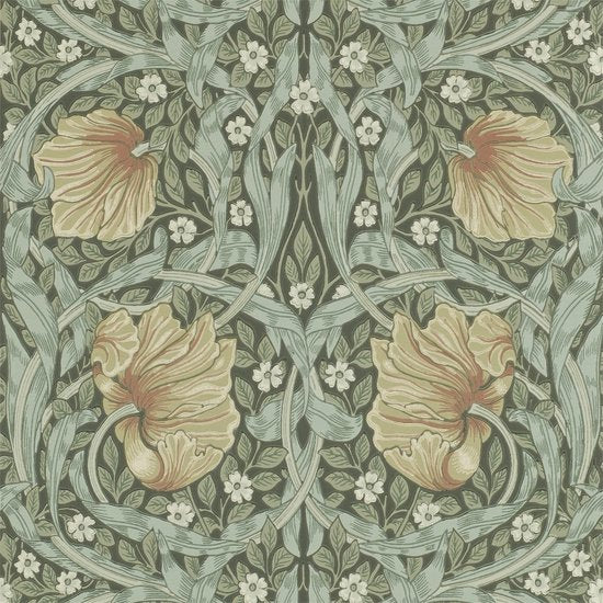 Het behang Morris Pimpernel is ontworpen in 1876. En het verhaal gaat dat Morris het dessin later in zijn eigen huis toepaste, in de eetkamer van het Kelmscott House, in Hammersmith London. Het behangpapier Pimpernel heeft een prachtig onnavolgbaar rythmisch dessin en is verkrijgbaar in 5 verschillende kleurstellingen, naar de originele kleuren. Deze 5 kleuren zijn uitgebracht in de William Morris & Co. Archive Collectie en 3 populaire kleuren zijn opnieuw uitgebracht in deze Morris & Co. - Wallpaper Compilation I. Alle kleuren zijn bij ons in de winkel verkrijgbaar.