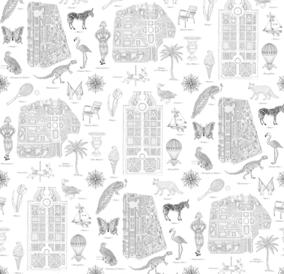 Pierre Frey Jardins parisiens wallcovering represents a magnificent ballad in the Parisian gardens. Marin Montagut painted this artwork for Pierre Frey in an 18th century style. The beautiful elements including a flamingo, a sailing ship and palm trees complete this beautiful design. The Pierre Frey Jardins parisiens Wallcover is available in two different color variants. Both available on our webshop.