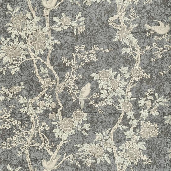 Zoals u kunt zien heeft dit Ralph Lauren Marlowe Floral behang een sierlijk aziatisch patroon van boomtakken en blad met vogels.
