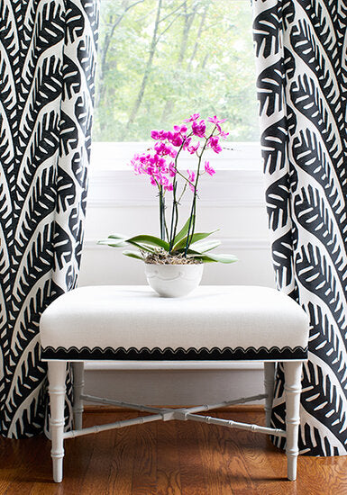 Het Ginger behang van het Amerikaanse merk Thibaut toont een grafische interpretatie van een gestileerd gemberblad. Dit dessin toont de schoonheid van de bladeren en biedt een levensgroot patroon. Perfect om karakter toe te voegen aan elke kamer.